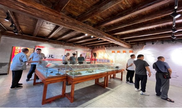 柳江区地志办与融水县委史志研究室人员在纪念馆内观看抗战文物与图片资料