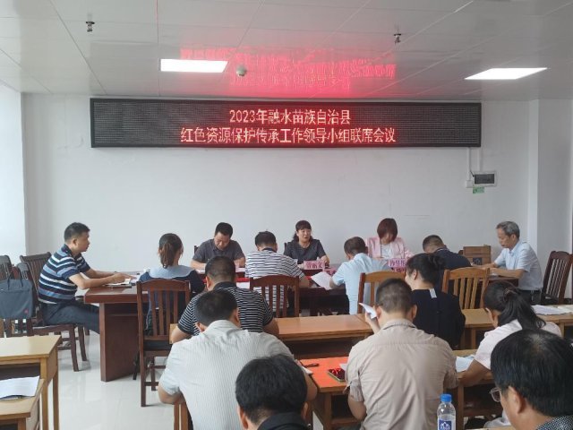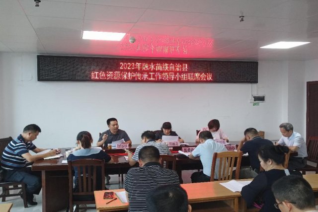 为深入贯彻落实习近平总书记关于红色资源保护传承重要论述和重要指示精神,不断完善融水县红色资源保护传承体系及提升保护管理能力,进一步做好融水县红色资源保护传承工作,强化部门间的协调配合和依法依规履行职责,构建完整的红色资源安全监管长效机制,切实增强红色资源保护意识,2023年9月18日,在县振城大厦14楼行政审批局会议室,融水苗族自治县红色资源保护传承工作领导小组召开第一次联席会议。县委常委、宣传部部长管丽文,县人民政府副县长沙昱彤出席会议。县四办分管(联系)工作副主任、县红色资源保护传承工作领导小组成员单位一名分管领导(县直单位参加)、融水镇、永乐镇、白云乡一名分管领导等30多人参加会议。