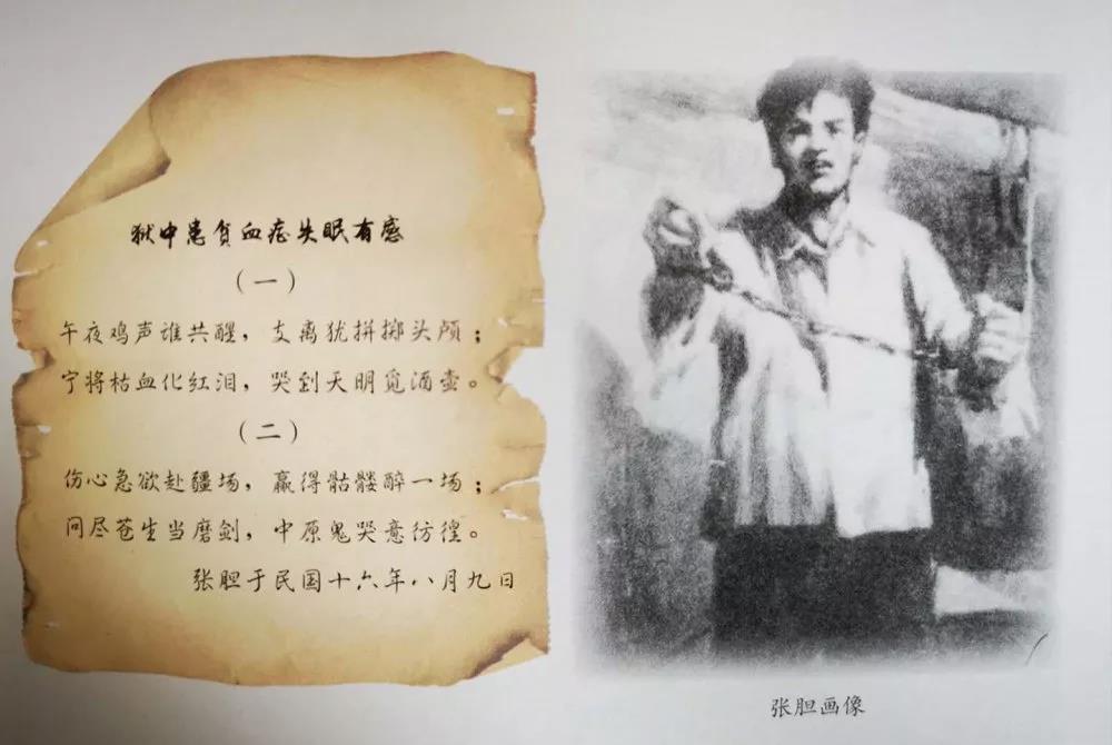 张胆在狱中受尽百般折磨和严刑拷打,疾病缠身,但他没有屈服,仍以顽强的意志与敌人作斗争。在狱中,他写下了不少诗稿表达自己为革命宁死不屈的决心,鼓励青年同志继续战斗。其中,《狱中患贫血症失眠有感》二首这样写道:
